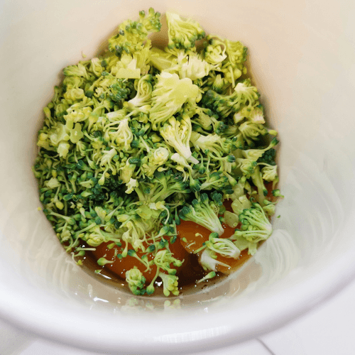 Chop the broccoli finely, cut the cherry tomatoes in half.