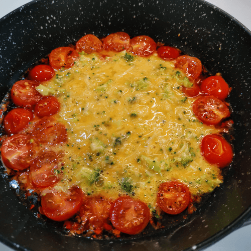 Сырная яичница с брокколи — утонченное сочетание насыщенного вкуса плавленого пармезана, нежности яиц и свежести брокколи. Этот рецепт имеет французские корни, где кулинария строится на гармонии простых, но качественных ингредиентов. Легкая пикантность от хлопьев чили-перца дополняет композицию, добавляя тонкую остроту. Блюдо идеально подходит для завтрака или легкого ужина, создавая чувство уютного гастрономического удовольствия. Яркие помидоры черри добавляют кисло-сладкую нотку, подчеркивая мягкую текстуру яиц. Оно не только радует вкусом, но и богато полезными веществами, делая его отличным выбором для тех, кто ценит сбалансированное питание. Подача с майонезом и соусом чили придает дополнительную глубину вкусу, делая каждую вилку незабываемой.