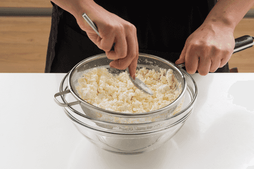 Squeeze the cottage cheese through cheesecloth. Pass the cottage cheese through a sieve.