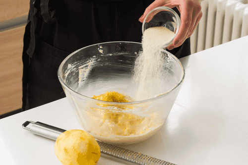 Add semolina and lemon zest, mix well.