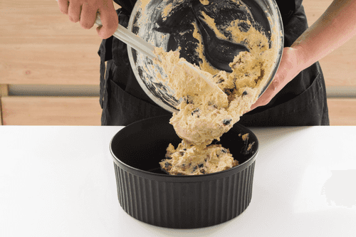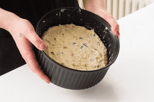 Spread the mixture in the mold and level it with a silicone spatula.