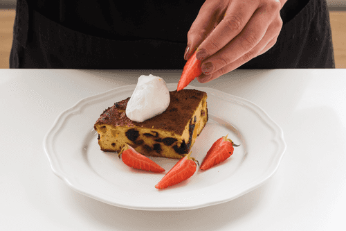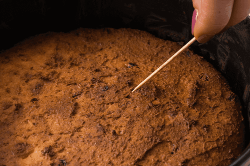 Once the casserole is browned, check it with a skewer. If it's dry, the casserole is ready.