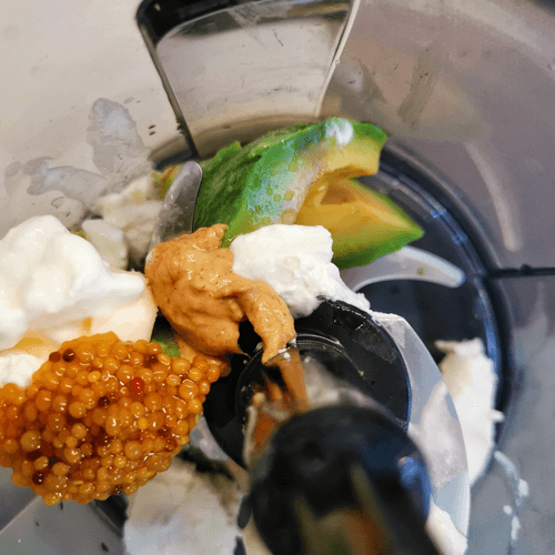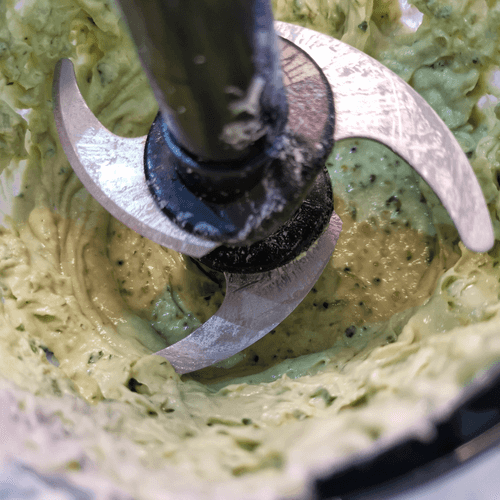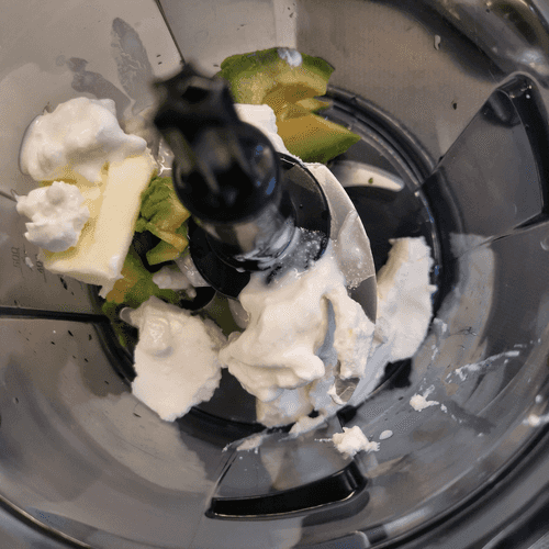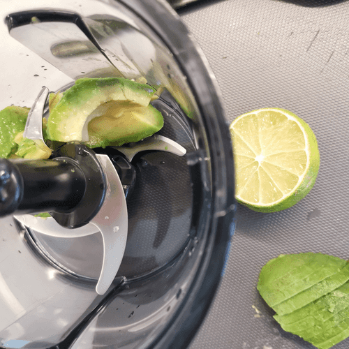 Slice the avocado, salt it, drizzle with lime juice, and put half in the blender.