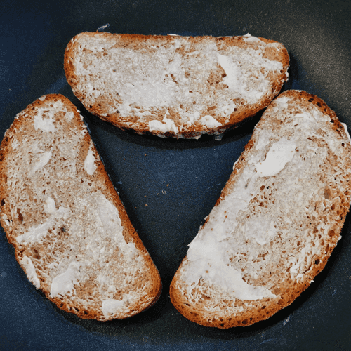Spread butter on both sides of the bread slices (with a thin layer) and place them in a heated pan. Fry for one minute on each side.