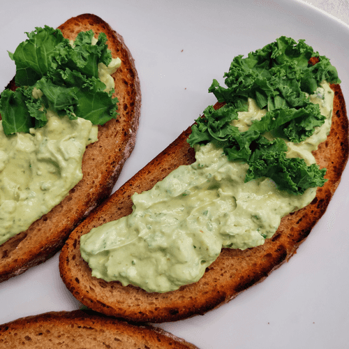 Boil the eggs soft and add them on top of the bruschetta before serving. Add a little balsamic cream on the avocado.