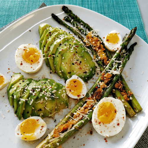 A secular European breakfast is an ode to sophistication and refinement in cuisine. This dish embodies the best traditions of morning meals, combining the tenderness of asparagus, the velvetiness of creamy sauce, and the freshness of avocado. Asparagus sautéed in butter reveals its natural flavor complemented by a savory creamy dressing with hints of garlic and pumpkin. Eggs—both chicken and quail—add richness, while sesame and a splash of lemon juice enhance the taste, giving it harmonious completeness. Such a breakfast is perfect for a leisurely morning when one wants to savor each ingredient while immersing in the atmosphere of an aristocratic breakfast beloved in European homes. A simple yet elegant dish that provides energy and good mood for the entire day.