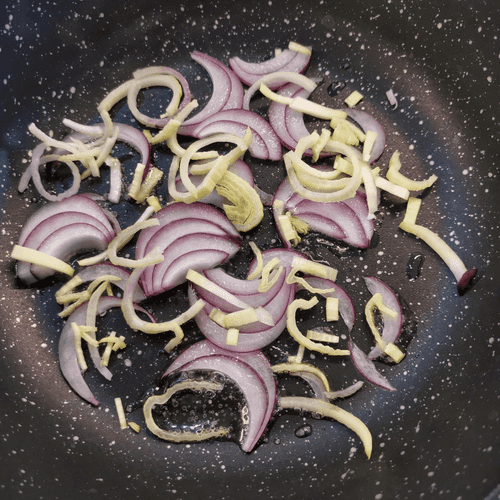 Heat the oil over high heat, add the onion, and reduce the heat to medium.