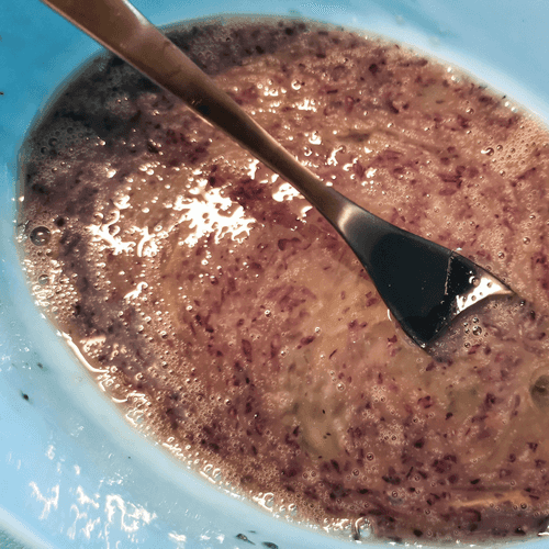 Grate the red cabbage on a fine grater, add an egg and salt.