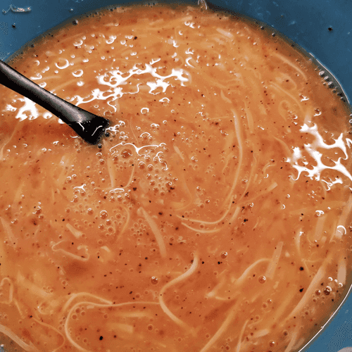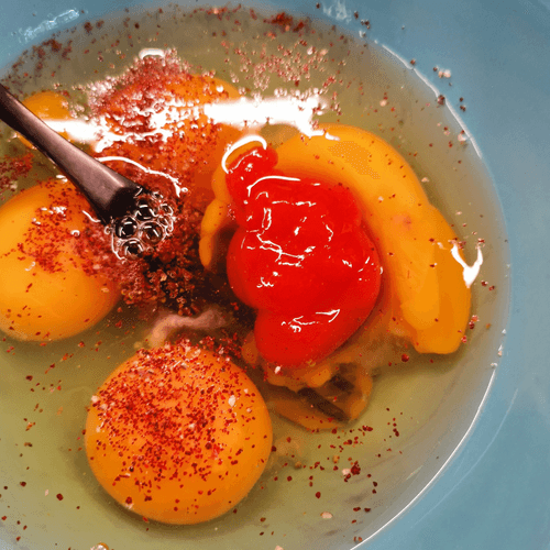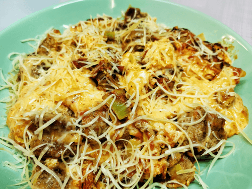 Сырная яичница с мясными колбасками и оливками — это питательное блюдо, вдохновленное европейскими традициями завтраков. Нежные яйца соединяются с пряными мясными колбасками, терпкими оливками и ароматным луком, создавая насыщенный вкус, дополненный пикантной ноткой соуса шрирача. Тертый пармезан придает блюду мягкость и глубину, а горчичное масло добавляет тонкую пряность. Такая яичница отлично подходит как для сытного завтрака, так и для легкого ужина, прекрасно сочетаясь с свежим хлебом или зеленью. Исторически подобные блюда возникли как быстрый и питательный способ насытиться, особенно в регионах с богатой мясной культурой. Это простая, но элегантная вариация классической яичницы, в которой каждый ингредиент играет свою уникальную роль, создавая гармонию вкуса.