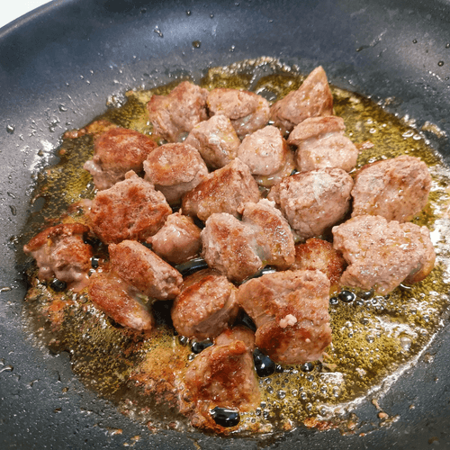 Cut the sausage into small pieces and send them to the heated mustard oil in the pan.