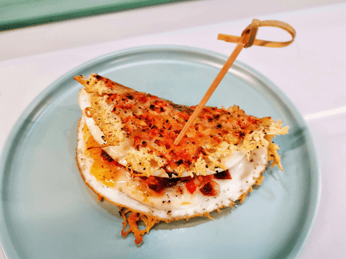 Томатно-сырная лепешка с яйцом — это утонченное сочетание итальянских вкусов, пропитанное ароматами средиземноморской кухни. Ее основа — нежный пармезан, запеченный до хрустящей текстуры, а начинка — пикантный микс свежих и вяленых томатов, чеснока и лука. Слоистый вкус дополняется легким орегано и пряной смесью перцев. Завершающим аккордом становится жареное яйцо, придающее блюду мягкость и насыщенность. История такого рецепта уходит в традиции итальянской крестьянской кухни, где простые ингредиенты превращались в изысканные блюда. Лепешку можно подать как аппетитную закуску, легкий завтрак или даже необычный вариант брускетты. Она идеально сочетается с бокалом белого вина или свежим зеленым салатом, создавая гармоничный и утонченный гастрономический опыт.