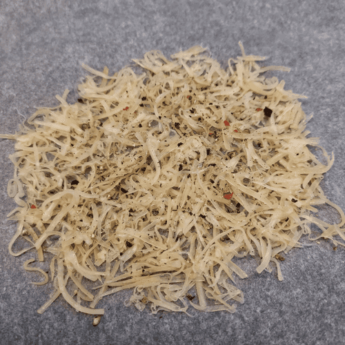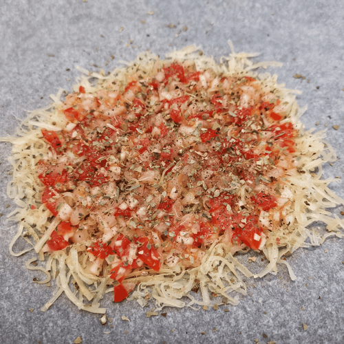 Place cheese (about 4 tablespoons) on a parchment-lined baking sheet and season with a pepper mix.