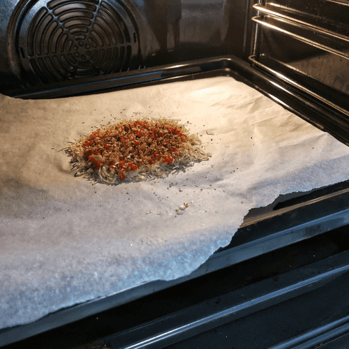 Send to a preheated oven at 180 degrees for 5 minutes.