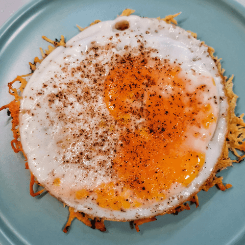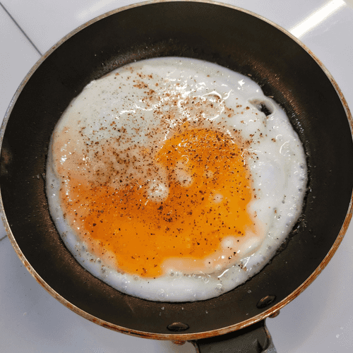 Fry the egg in olive oil with a pinch of pepper until the white is set.