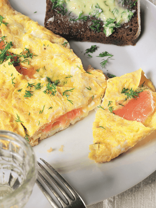 Omelette with vodka and salmon