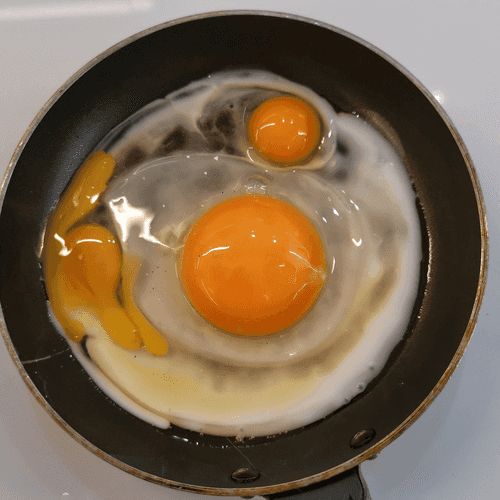Heat oil in a small pan and add the eggs.