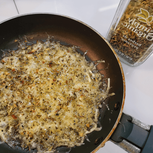 Place the cheese on a dry heated skillet.