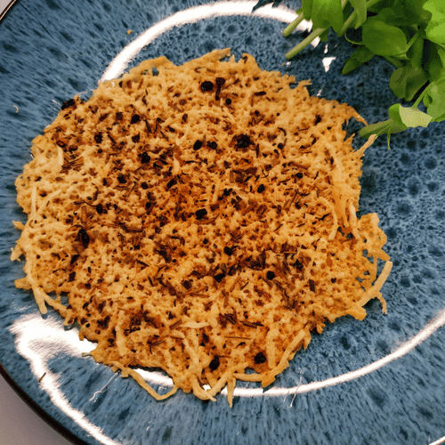 After 2 minutes, carefully transfer the cheese base to a plate with a spatula.