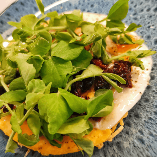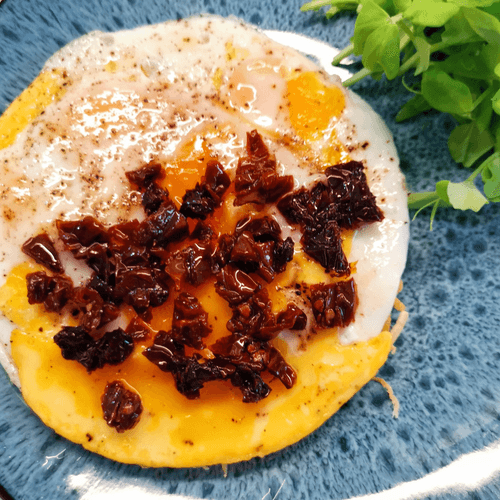 Яичница на сырной основе — это гармония нежности и насыщенного вкуса. Этот рецепт сочетает воздушность яиц с кремовой текстурой расплавленного сыра, создавая блюдо, которое тает во рту. Европейские традиции завтраков вдохновляют этот рецепт, где сыр становится не просто добавкой, а основой, подчеркивающей глубину вкуса яиц. Пряные прованские травы, вяленые помидоры и свежая зелень добавляют нотки изысканности, превращая обычный завтрак в настоящее гастрономическое наслаждение. Подача яичницы на золотистой сырной корочке делает блюдо не только ароматным, но и визуально привлекательным. Идеально для утренней трапезы, этот завтрак дарит энергию и чувство комфорта с каждым кусочком.