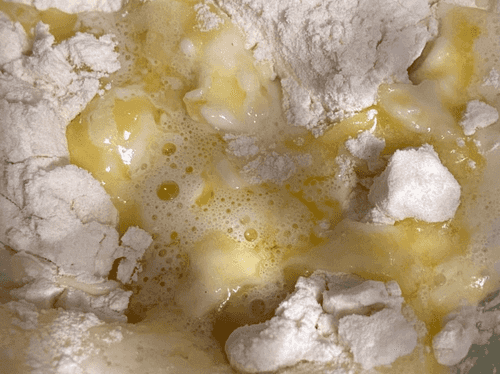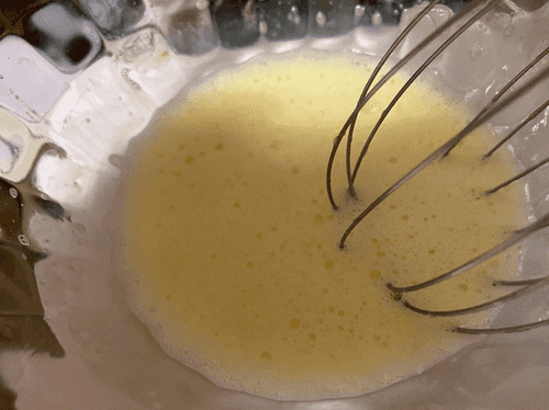 Pour the melted butter into the egg mixture and mix well.