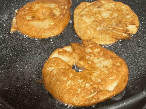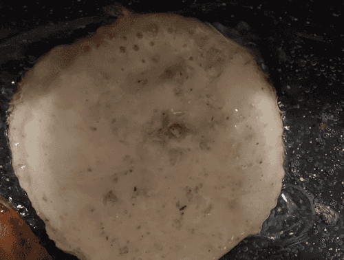 Fry until golden brown, flip and fry until cooked through.