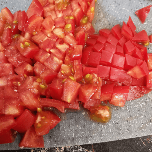 Cut the tomato into small cubes.