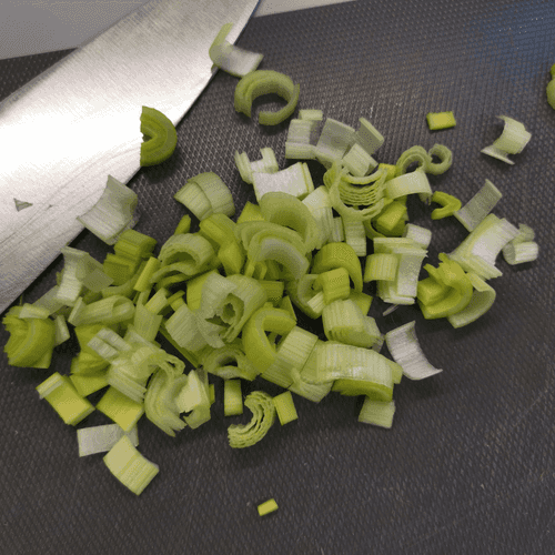 Chop the leek finely.