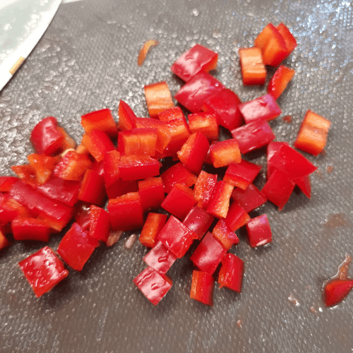 Cut the pepper into small cubes.