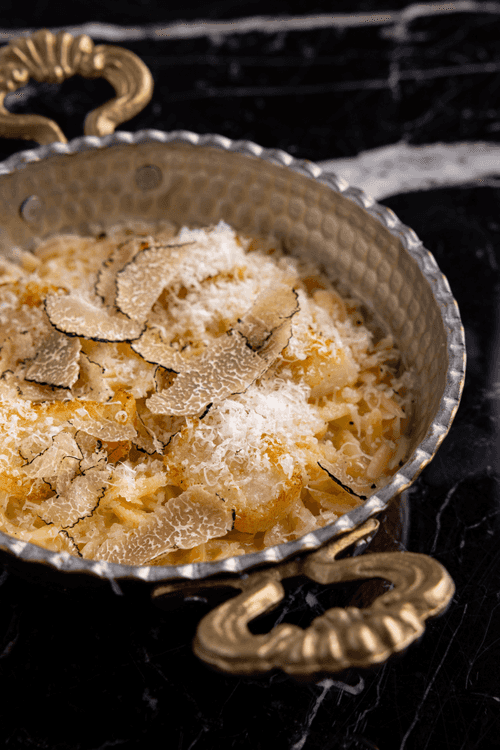 Once the pasta is ready, pour in the remaining 200 ml of broth, 160 grams of butter, and 40 grams of Parmesan.