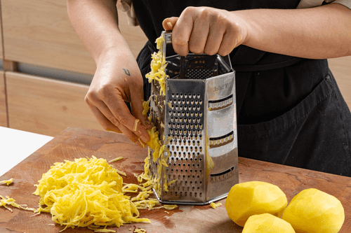 Peel the potatoes and grate them on a coarse grater.