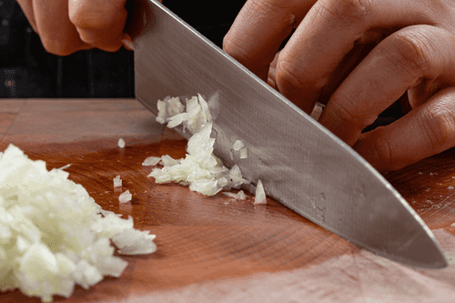 Chop the onion very finely or grate it.