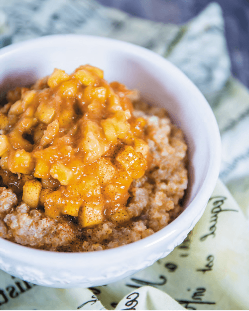 Place in a bowl, decorate with apples and bananas, and sprinkle with cinnamon on top.