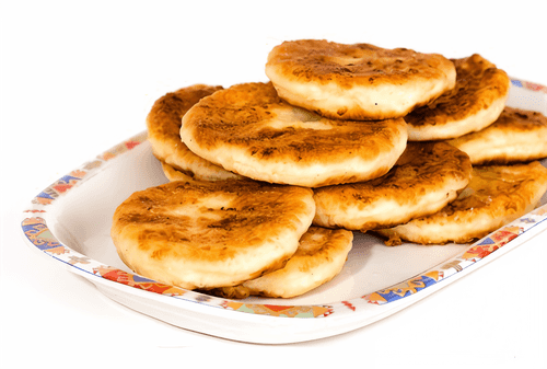 Form round patties from the prepared dough, coat them in flour, and fry in well-heated oil on both sides.