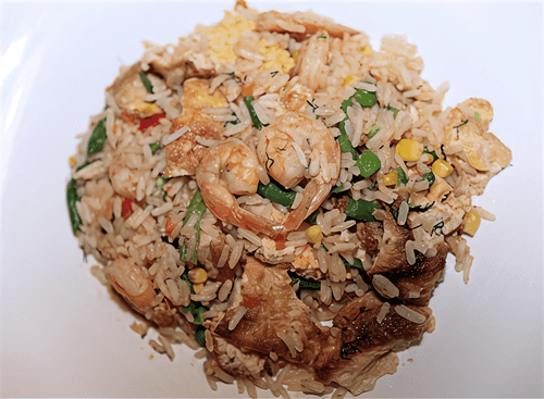 Rice with shrimp, vegetables, and omelet is a vibrant representative of Chinese cuisine that combines a balance of flavors and textures. The airy omelet, tender royal shrimp, and aromatic garlic create a rich and deep taste, while the sautéed vegetables add freshness and lightness. Using slightly cooled rice makes the dish perfectly fluffy, as is customary in traditional Chinese gastronomy. This dish is widely used in China's street food scene, where it is cooked in a hot wok to impart a special smoky aroma. Serving it with soy sauce enhances the flavor and adds spiciness. It is suitable for both everyday dinners and festive gatherings – its simplicity blends with depth of flavor to delight gourmets and lovers of Asian cuisine.