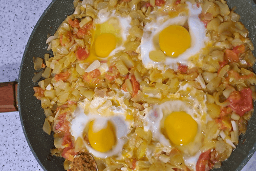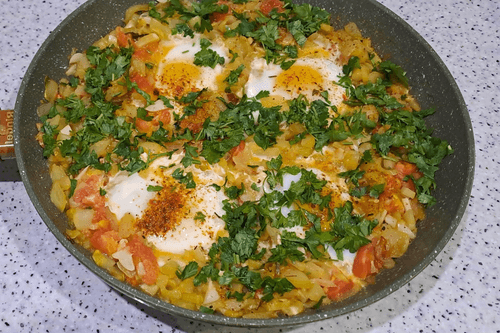 Shakshuka is a fragrant dish from Arab cuisine that combines the rich flavors of ripe tomatoes, sweet peppers, and tender zucchini. Its history traces back to North Africa, where it is traditionally prepared for breakfast and served with bread or flatbreads. Eggs baked in vegetable sauce add richness and heartiness to shakshuka, while spices for pilaf introduce Eastern notes. The lightness of zucchini makes this variation especially delicate. It is perfect for both a refreshing morning and a cozy dinner. The dish combines the freshness of vegetables, the softness of eggs, and the aroma of spices to create a harmonious flavor that will please Mediterranean cuisine lovers. Shakshuka is best served hot, complemented with fresh herbs and crispy bread.