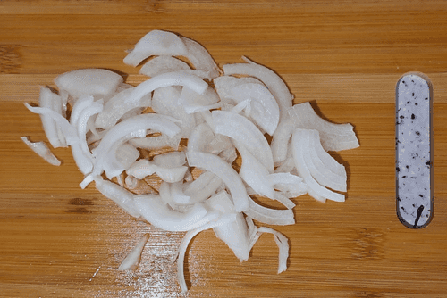 Slice the onion into half rings or strips.