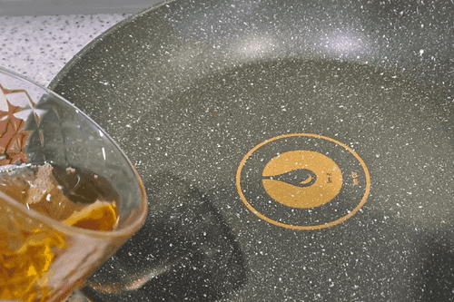 Pour vegetable oil into the pan and place it on the heat.
