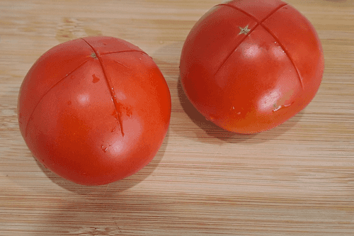 Make shallow cuts on top of the tomatoes.
