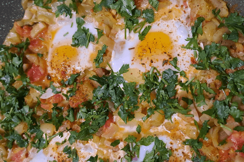 Cover the pan with a lid and simmer for about 5 more minutes on low heat until the eggs are cooked.