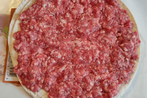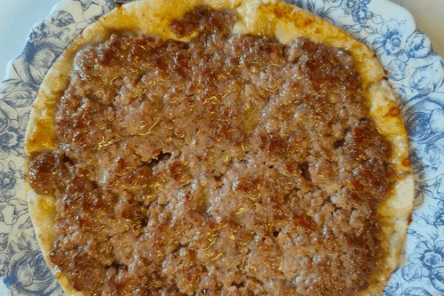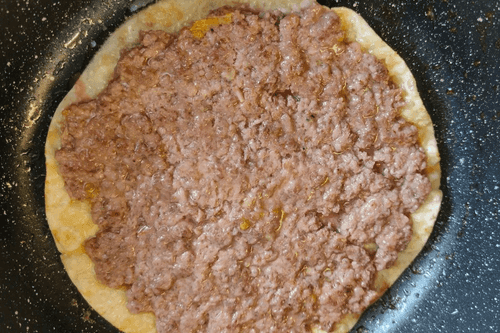Spread half of the minced meat on the lavash and distribute it over the entire surface. Use the remaining minced meat for the second flatbread.