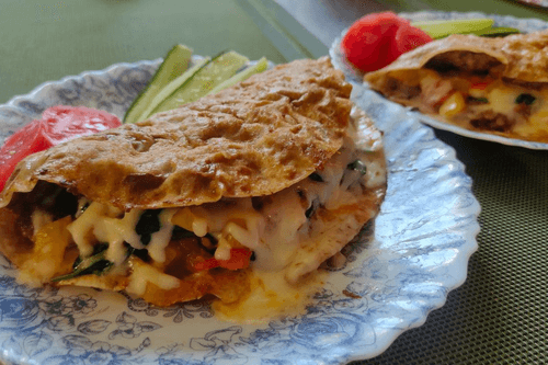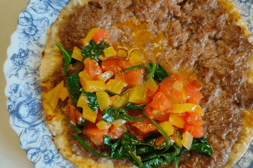 Place half of the vegetables on the lavash with minced meat (on one half). Use the other half of the vegetables for the second flatbread.