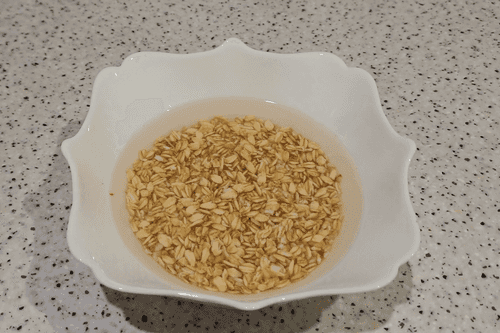 Rinse dry oats with cold boiled or purified water. Drain the water.