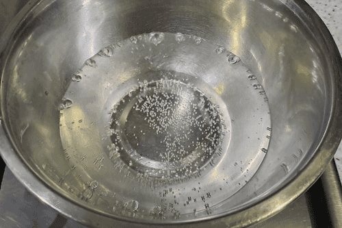 Pour 200 ml of water into a separate container and place it on the heat to bring the water to a boil.