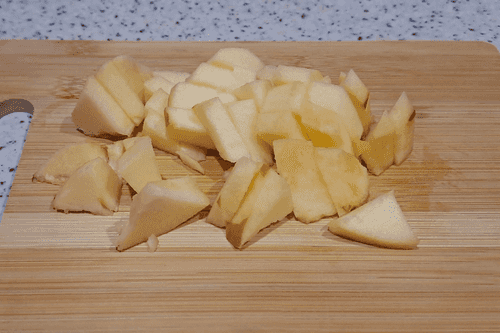 Cut the apple into medium-sized cubes or strips.