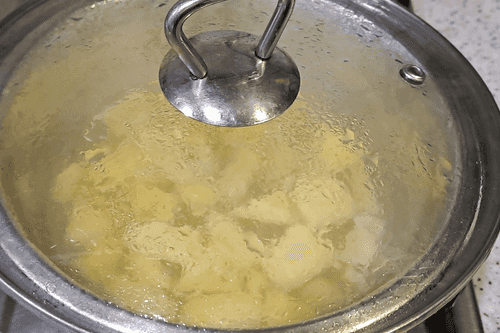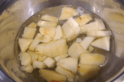 Place the sliced apple in boiling water.