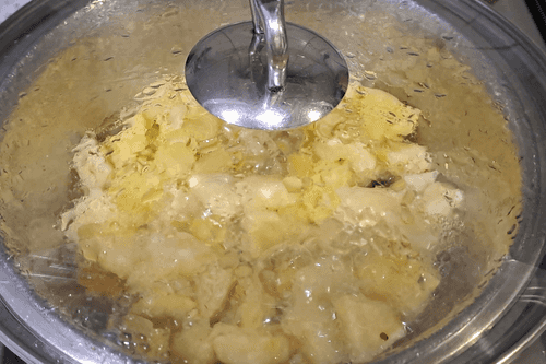 Pour 200 ml of water into a separate container and place it on the heat to bring the water to a boil.