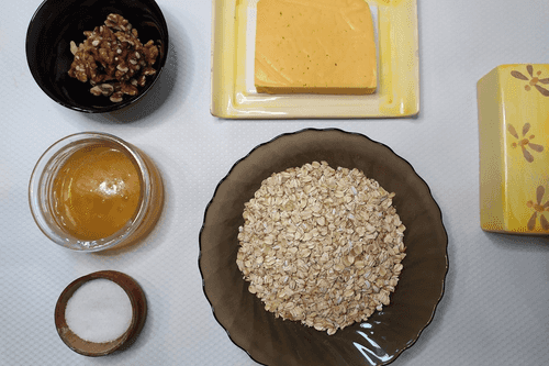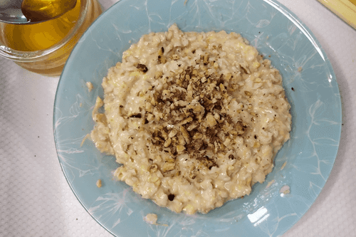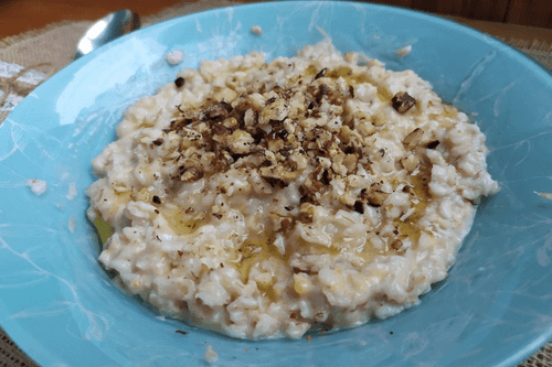Oatmeal with cheese, walnuts and honey