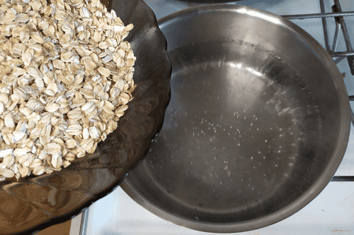 Boil oatmeal in salted water at a ratio of 1 part grain to 2.5 parts water.
