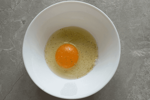 Crack an egg into a bowl, add pepper. Mix.