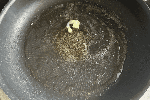 Heat the oil in the pan.